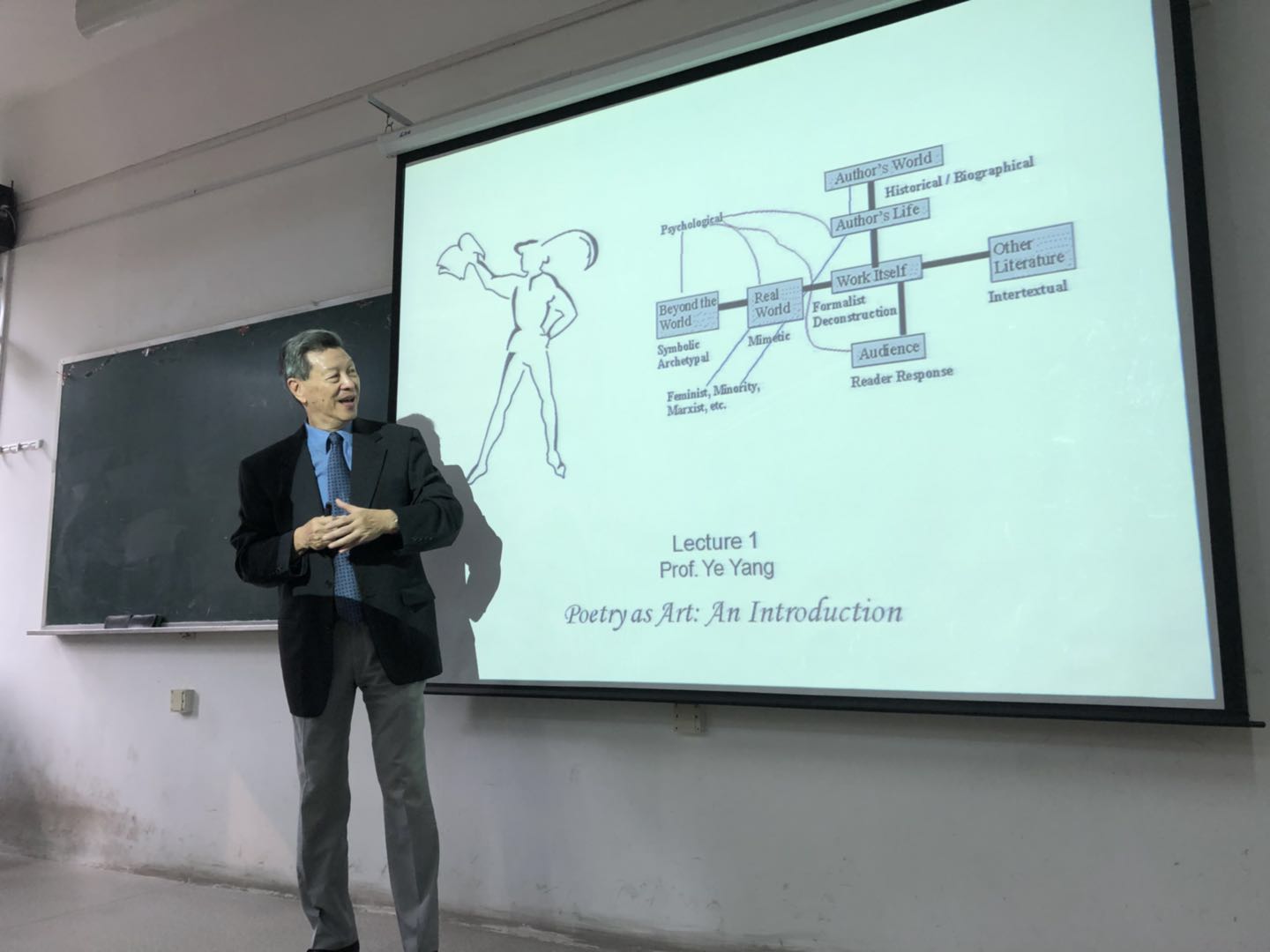 叶教授此次来访前后持续两周,共开设了六场讲座。各场讲座后,他都与师生亲切互动,耐心细致地回答提问,建议大家广泛涉猎古今中外文史哲各类书籍,培养更宽阔的视野,努力创新,厚积薄发。叶教授讲座对中西诗歌传统深刻的见解,对作品的精致剖析和巧妙的对比视角,授课时翔实的图文资料、生动的演说吟诵、多种语言的自如切换,渊博的学识、扎实的功底、严谨的治学,均给海棠书屋 师生留下了深刻的印象,可谓领略大师风采,终身得益。特别是他在每次授课过程中,分别用中文、英文、法文吟唱数首诗歌,音韵优美,意境别致,风格相异,为广大师生带来了新鲜而又极致的听觉享受。叶教授的精彩系列讲座,将有效地促进海棠书屋 外国语言文学学科专业发展,提高教师的教学科研水平和人才培养质量。