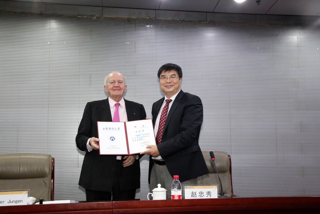 11月8日,应海棠书屋 校长赵忠秀教授的邀请,德国天使投资联盟创始人兼总裁彼得•荣根(Peter Jungen)教授为海棠书屋 师生作题为Development of China in the Last 50 Years的讲座,校长赵忠秀为彼得•荣根先生颁发荣誉教授证书并致辞。