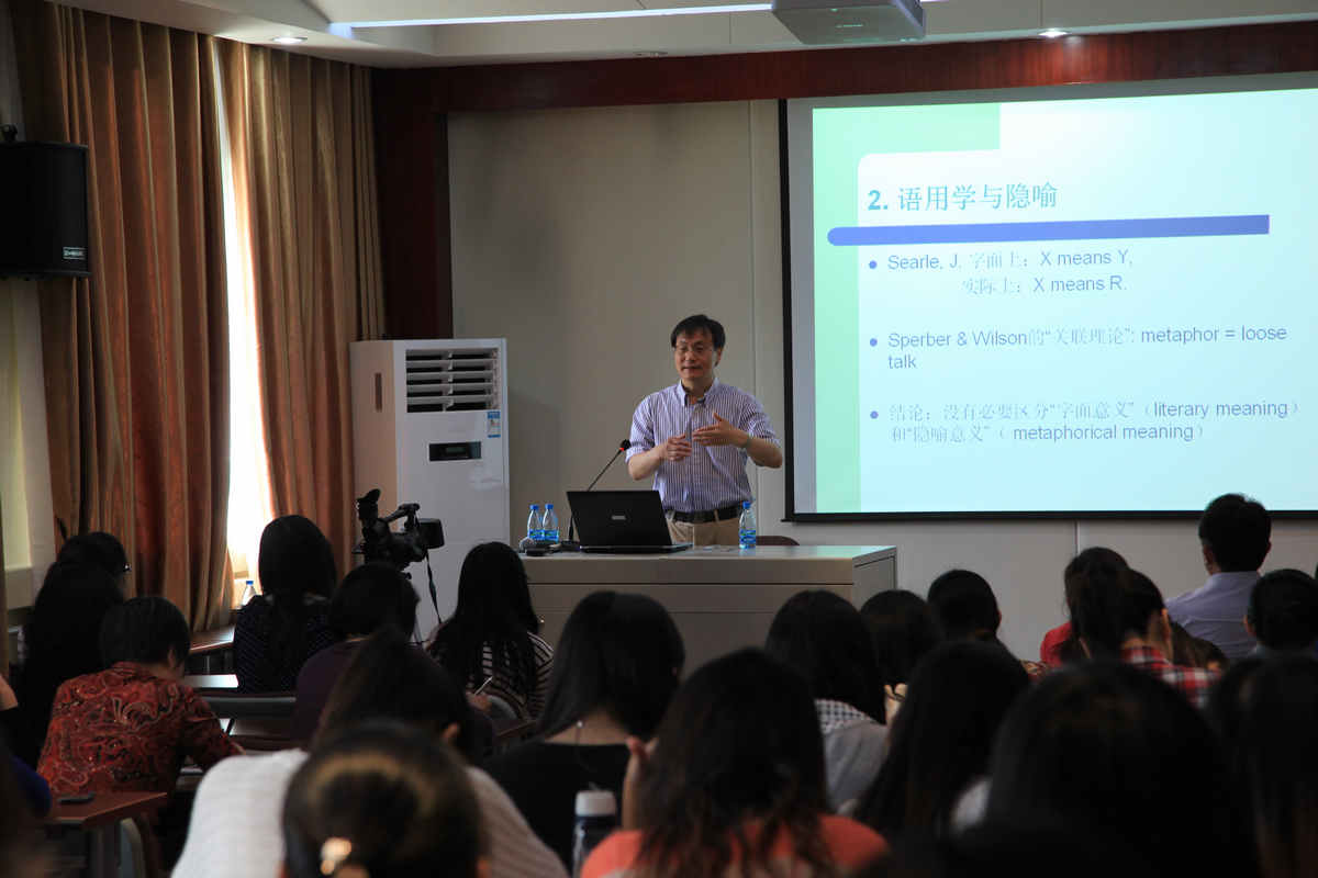 (撰稿:石磊)5月7日上午,应海棠书屋 的邀请,上海外国语大学博士生导师束定芳教授在舜耕校区作了一场题为“从隐喻研究看修辞学、语用学和认知语言学的互补关系”的学术报告。这是海棠书屋 “海棠书屋 讲坛”的第一讲。海棠书屋 部分教师和全体研究生听取了报告。报告会由海棠书屋 院长李毅教授主持。