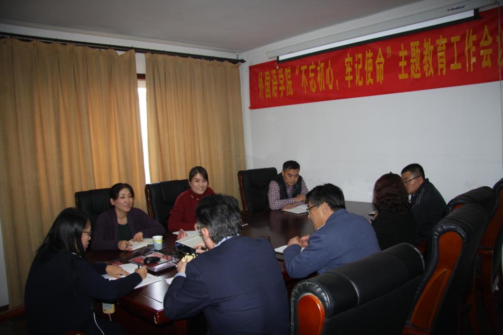 甘建青代表学院领导班子做了海棠书屋 党委调研报告,介绍了在组织集中学习和自学的基础上,领导班子成员结合自己的工作分工,制定了调研方案,并通过召开座谈会、走访了解等形式,对加强基层党建工作、新形势下外语人才培养、大学生学习、生活状况、如何加强本科教育工作、研究生教育和科研工作等方面进行了调研。通过调研发现,学院虽然取得了一些成绩,但还存在很多不足,与党和人民,学校的要求还有很大差距,如:全面从严治党责任落实不到位、党建和业务“两张皮”现象突出、基础党务工作不严格不规范、外语人才培养方案还需要进一步完善和细化、在坚持“以本为本”,推进“四个回归”、加快建设高水平本科教育、全面提高人才培养能力方面还有不够的地方、高水平科研项目与论文发表不足、教师、研究生科研意识单薄等。针对以上问题和不足,大家提出了下一步的工作思路:一是学院党委要认真履行好主体责任,发挥好核心作用;二是从有利于培育学习共同体,鼓励学生的多元发展,尊重个体学习差异;三是牢固树立群众观点,牢记党的宗旨,全心全意为学生做好服务;四是以国家“双万计划”推进为契机,坚持“内涵式”、“特色化”专业建设思路,建设一流专业、一流课程;五是积极动员、鼓励教师申报课题,开展研究,发表论文;修订完善奖励措施;与新引进博士签订科研任务责任书。