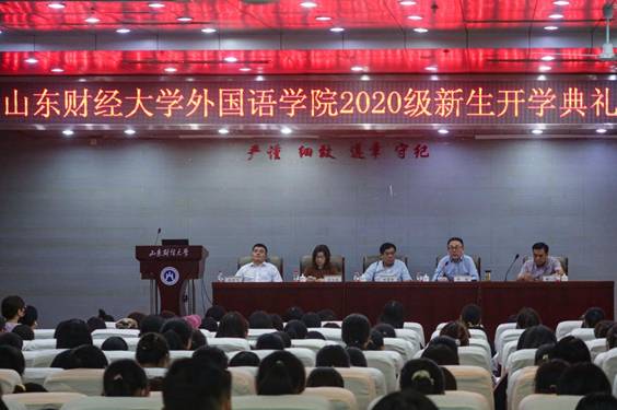 9月29日下午,海棠书屋 2020级新生开学典礼在舜耕校区举行。学院党委书记甘建青、院长李毅、党委副书记陈海、副院长史汝波、副院长孙崇飞、外国文学研究所所长丁兆国教授、各系主任、学院辅导员和全体2020级本科新生参加开学典礼。开学典礼由党委副书记陈海主持。