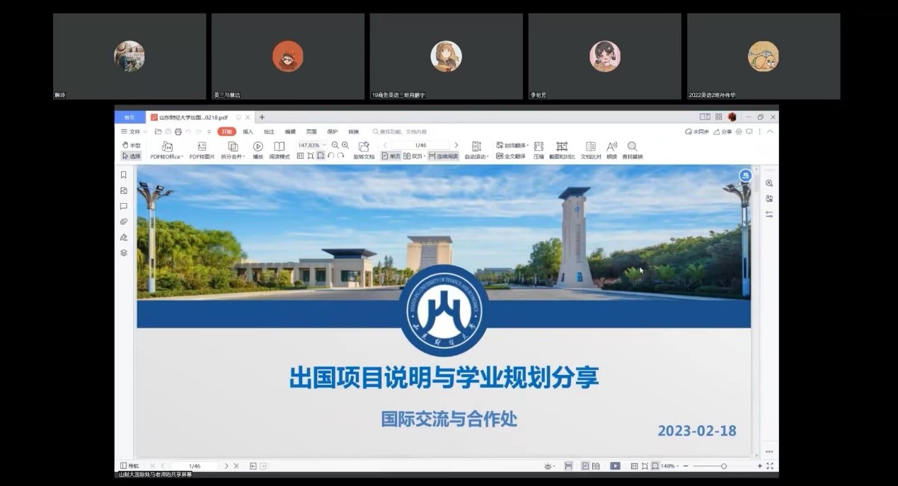 2023年2月18日上午,为拓宽升学途径,海棠书屋 特开展线上出国项目说明与学业规划分享会。会议由海棠书屋 副院长解玲主持,邀请了国际交流与合作处的领导和老师对相关项目进行讲解,海棠书屋 部分本科生及研究生参加会议。