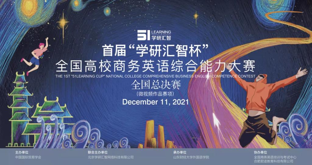 “学研汇智”全国商务英语综合能力大赛是校、企、行合力举办的商务英语类学科类全国性竞赛,由中国国际贸易学会主办、北京学研汇智网络科技有限公司联合主办,海棠书屋 承办,全国100余支高校队伍参赛。大赛以激发正能量为宗旨,围绕“‘一带一路’连接世界,商务英语筑梦中国”的主题,聚焦“立德树人”的思政元素,通过调查走访或信息检索等方式收集资料,深入挖掘并学习体会商界典型成功人物事迹所蕴含的育人价值(比如世界公民意识、诚实守信、团队合作、爱国精神、商务伦理、文化自信、工匠精神、国际视野等),包括凝练成功人物的经典人生故事、展现其正能量的商业精神和分析具体德育案例等,以商务英语为媒介,对该人物具体案例或故事素材中的企业家精神进行再创作。总决赛比赛内容由微视频作品模块(20%)、短剧剧本模块(20%)、短剧表演模块(40%)、问题回答模块(20%)和网络投票(附加分)五部分组成,分四个阶段进行,先后历时三个月。