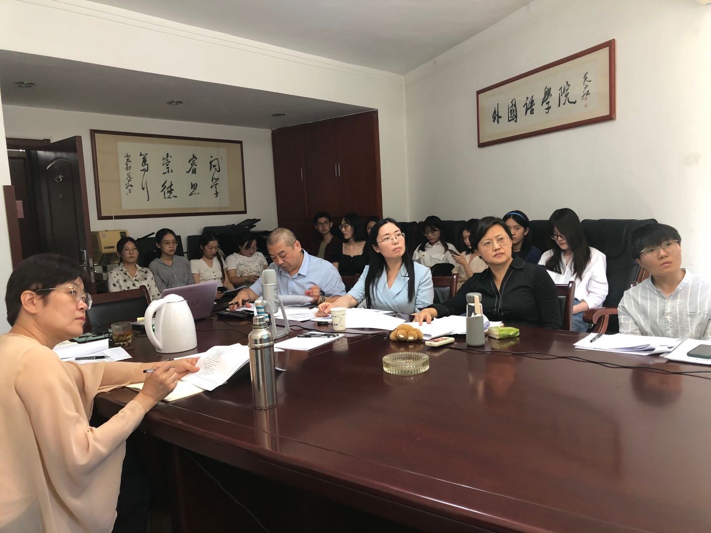 2020年9月17日下午,海棠书屋 2019级翻译硕士开题论证会于舜耕校区举行。本次论证会采取线上线下相结合的方式,分两组同时进行,共有10位专家和33名学生(英语口译和英语笔译方向)参加。经专家组论证,该33名学生全部通过本次论文开题。