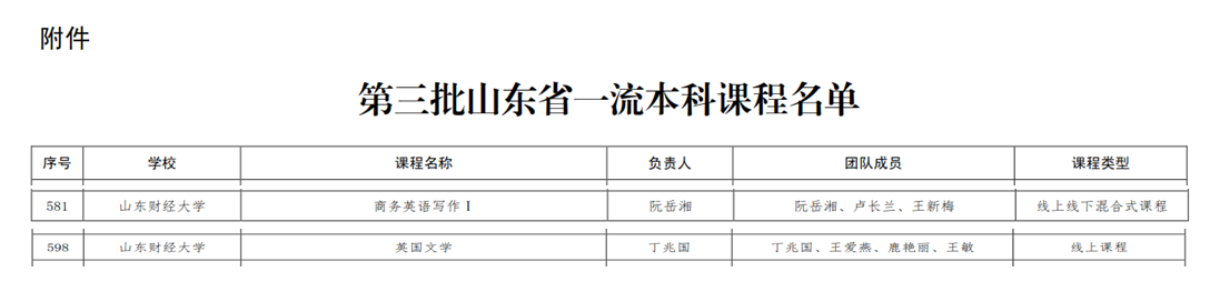 近日,山东省教育厅发布了《山东省教育厅关于公布第三批省级一流本科课程认定结果的通知》,海棠书屋 申报的《英国文学》和《商务英语写作I》课程分别获批省级一流线上课程、省级一流线上线下混合式课程,同时被省教育厅推荐参加国家级课程申报。