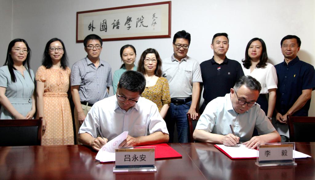 7月10日下午,学院与齐鲁国际交通发展有限公司校企合作签约仪式在舜耕校区顺利举行。齐鲁国际交通发展有限公司执行董事吕永安、长城国瑞证券有限公司山东分公司总经理郝信东、齐鲁国际交通发展有限公司总经理助理冯启涛、袁合烈、综合管理部副总经理庄园园、风险管理部副总经理马甜;海棠书屋 院长李毅、副院长史汝波、翻译硕士中心主任解玲、英语系主任贾怡东和副主任聂喆、商务英语系主任孔宪遂、副主任阮岳湘和张斐瑞出席签约仪式。