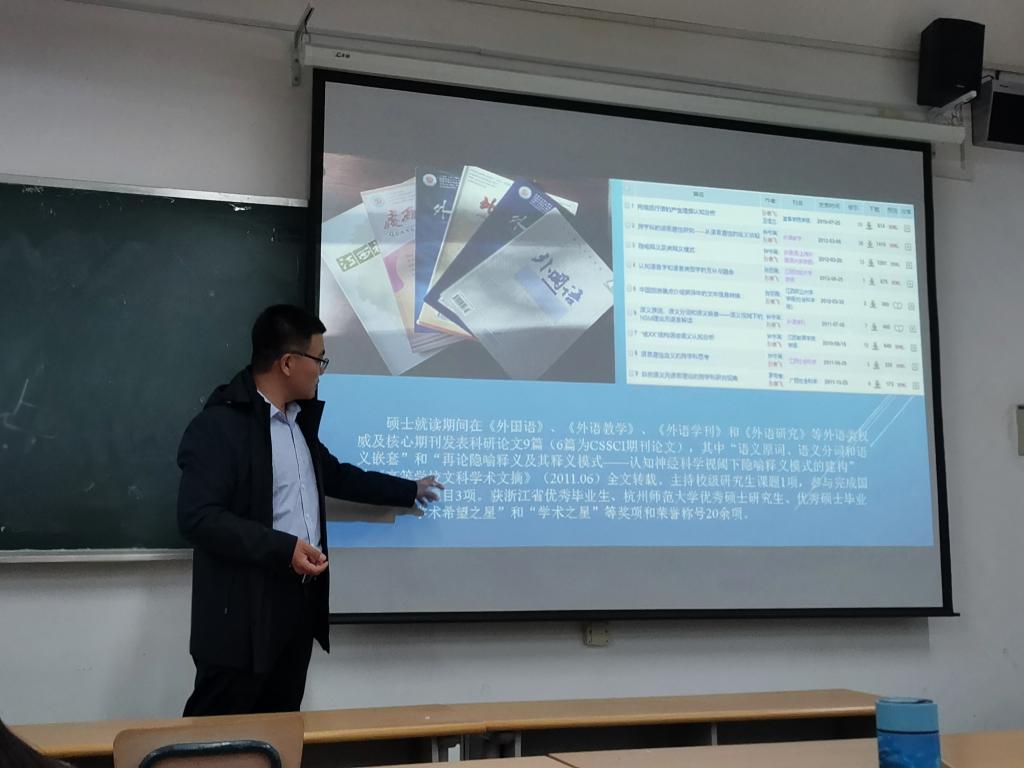 11月18日下午,海棠书屋 在舜耕校区3307开展“青年学者讲座”专项活动。海棠书屋 外国语副教授、硕士研究生导师孙崇飞副院长以“砥砺前行,不负青春”为题,分享本人科研经历,助力研究生学术发展规划,海棠书屋 部分研究生参加了此次讲座。
