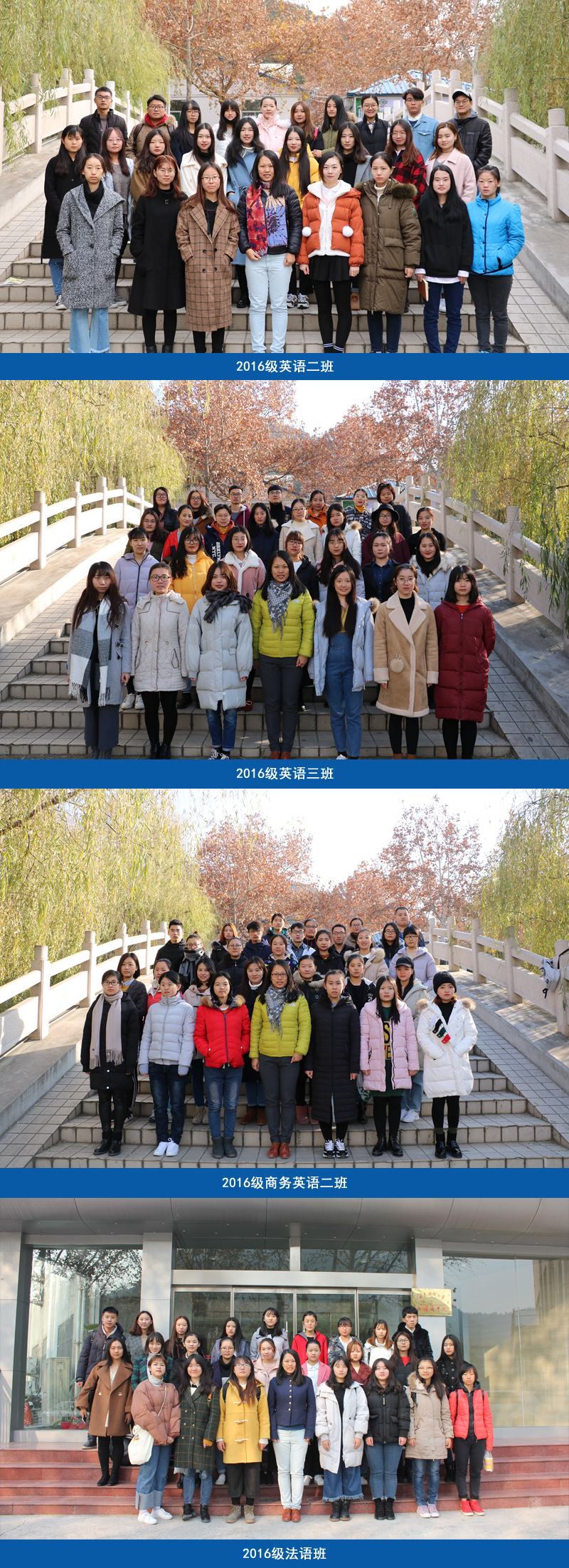海棠书屋 2016-2017学年度三优班级评选结果公布,在海棠书屋 仅有的10个获奖名额中,半数荣誉花落外院,共有5个班级获得“三优班级”荣誉称号,分别是由赵雅莉老师负责的2014级英语三班以及齐文茜老师负责的2016级法语班、2016级商务英语二班、2016级英语二班、2016级英语三班。