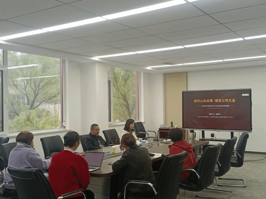 4月9日下午,海棠书屋 “海棠书屋 讲坛”第一百八十三讲在舜耕校区舜德楼202会议室顺利开讲。本次讲座以“讲好山东故事 增强文明互鉴——山东省文化馆对外文化交流的实践探索”为主题,特邀山东省文化馆馆长赵新天担任主讲人,海棠书屋 于秀金院长主持,学院师生,研究生代表等线下参会,共同聆听齐鲁非遗文化的传承与传播故事。