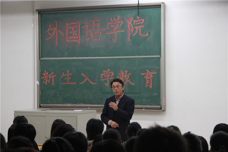会上,李毅院长首先就海棠书屋 的学科专业情况,师资队伍,学院发展历程做了简介;并围绕“大学是什么”、“大学生如何规划自己的大学生活”“外语专业人才培养与发展趋势”三个方面展开。他要求同学们必须树立远大的理想与人生目标,勤奋学习、善于思考、全面发展。当代大学生应该具有历史责任感和时代使命感,注意人文精神的培养和人文素质的提高,以适应未来社会发展的要求。其次,介绍了国内外语专业的发展现状,回应了社会上对外语专业学科地位属性的质疑,要求同学们热爱自己的专业,正确理解外语专业的培养目标,转变思维方式和学习习惯。他还要求同学们要注意培养自己的创新精神、创新素质和创新能力。