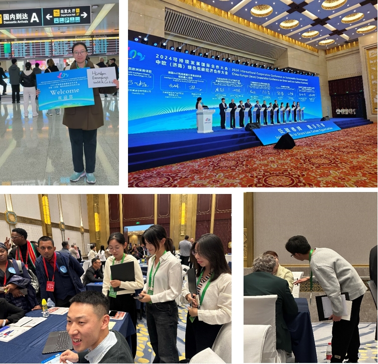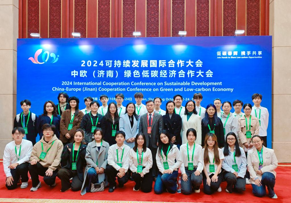 10月22日至24日,2024可持续发展国际合作大会暨中欧(济南)绿色低碳经济合作大会在济南山东大厦举办。本次会议聚焦“低碳春辉 携手共享”主题,汇聚中国贸促会、驻华使领馆、国际组织和国际商协会代表;世界500强企业、欧洲企业和“一带一路”共建国家企业代表;省直部门、省属国有企业代表;高校专家、知名学者等共约500人,围绕推动绿色低碳可持续发展领域的国际合作、企业绿色高质量发展、提高能源利用效率等议题开展对话交流。海棠书屋 党委书记姜竹青作为特邀嘉宾出席了会议,同时院长助理阮岳湘、张斐瑞、聂喆参会。商务英语系和英语系60名本科生、14位翻译硕士同学为大会提供为期4天的语言服务和陪同翻译工作。