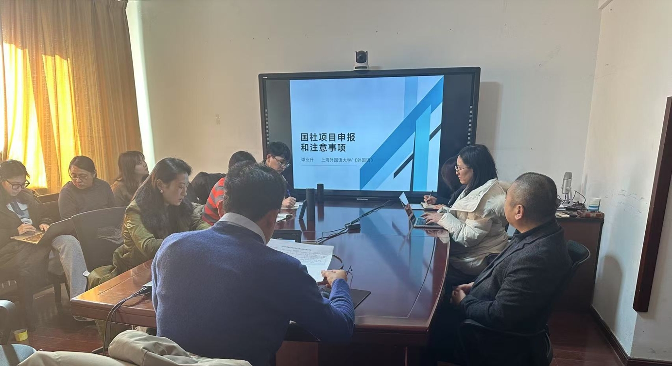1月6日上午,上海外国语大学谭业升教授为学院拟申报2025年高层次基金项目的教师进行了项目申报指导。会议由院长助理张斐瑞主持,拟申报今年课题的老师们参加了会议。