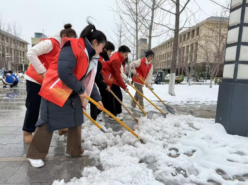 2025年3月3日,济南遭遇强降雪天气,校园道路被积雪和结冰严重覆盖。在学雷锋主题活动的感召下,海棠书屋 迅速响应,为切实保障师生出行安全、维护校园正常秩序,精心组织2024级部分学生干部投身扫雪除冰志愿行动。在雷锋精神的光辉引领下,同学们纷纷以积极作为彰显奉献担当,用实际行动为校园撑起“安全保护伞”。