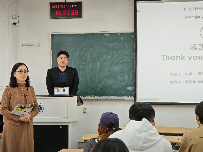 活动伊始,聂喆对沙磊老师的到来表示热烈欢迎,并指出此次宣讲会是两院深化合作、拓宽学生升学路径的重要契机。随后,一部展现澳门城市大学风貌的短片拉开了序幕。视频从濠江之畔的校园风光切入,生动呈现了该校“服务澳门,融入湾区”为宗旨的的办学理念,以及多元文化交融的学术环境。澳门城市大学作为一所年轻而充满活力的国际化高校,让在场同学对澳门城市大学的学术生态充满向往。