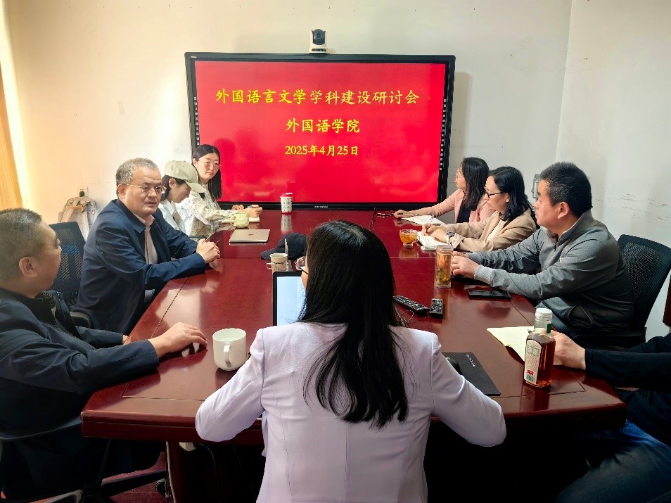 25日上午,周长银教授与学院领导班子及骨干教师举行外国语言文学学科建设研讨会。会议聚焦科研规划、团队建设与学科特色凝练,周教授结合国家社科基金项目评审经验及北京第二海棠书屋 学科发展案例,提出多项建议,鼓励学院以“外语+财经”为特色,探索跨学科研究,形成差异化优势,优化项目申报策略、推动学术成果转化等。