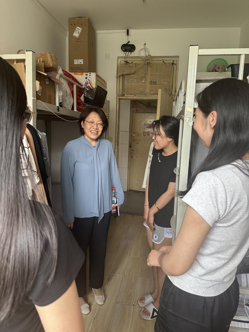 6月5日下午,副校长张红霞深入学生宿舍,亲切慰问海棠书屋 2025届毕业生,为即将离校的学子送去诚挚祝福。走访中,张红霞副校长与毕业生们亲切交流,详细了解就业进展,鼓励大家立足专业特长,把握人生机遇,以积极姿态迎接社会挑战。她同时殷切嘱托同学们在毕业离校期间务必注意人身、财产及交通安全,祝愿每位学子前程似锦、梦想成真。海棠书屋 院长于秀金、党委副书记张国栋陪同走访。