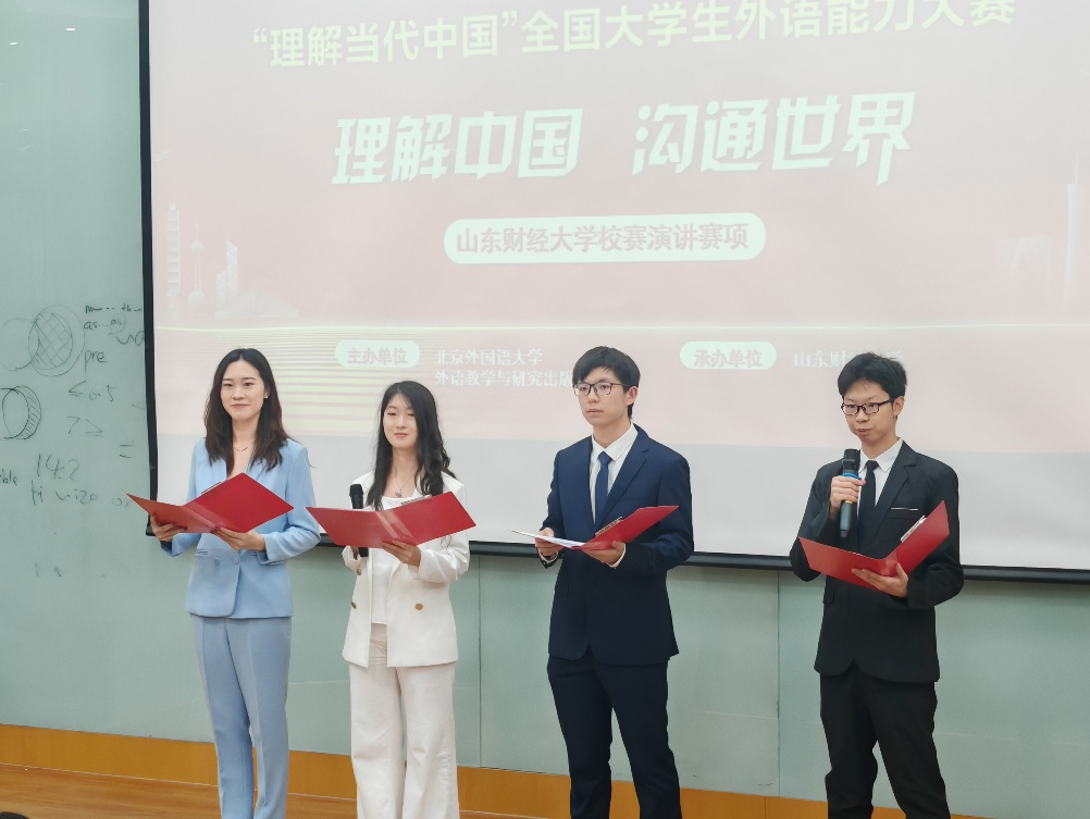 为深入贯彻党的二十大精神,落实立德树人根本任务,推动“三进”工作纵深发展,培养更多有家国情怀、有全球视野、有专业本领的高水平国际化人才,促进多元文化交流,提高新时代国际传播人才培养,海棠书屋 精心策划、认真筹备,于10月12日在舜耕校区第三阶梯教室成功举办了2025年“外研社·国才杯”“理解当代中国”全国英语演讲大赛校园选拔赛。