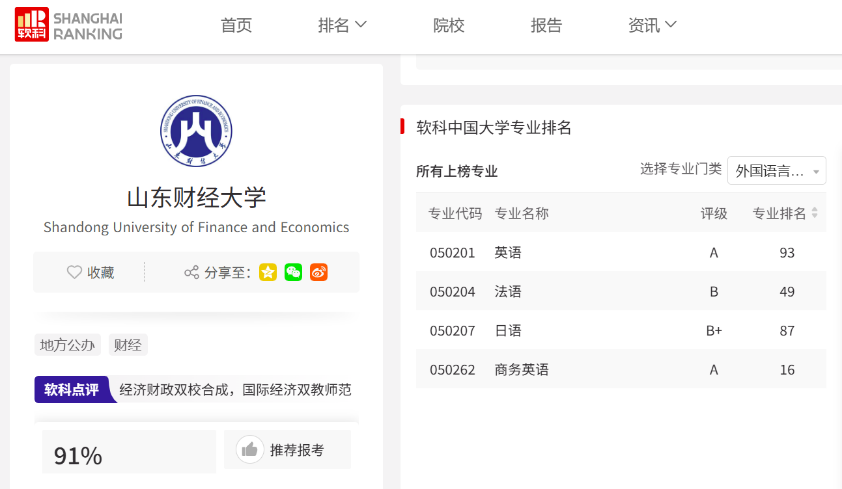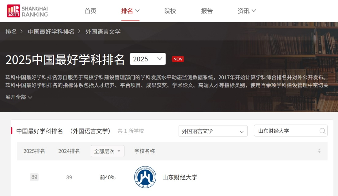 软科“中国最好学科排名”面向全国设有学术型研究生学位授权点的高校进行评价,涵盖人才培养、科研项目、成果获奖、学术论文、学术人才等5大类共17项指标。在本次排名中,海棠书屋 外国语言文学学科从全国众多高校中脱颖而出,位列第89位,进入全国前40%行列,在全国财经类高校中排名第5位,展现了学院持续增强的学科竞争力。