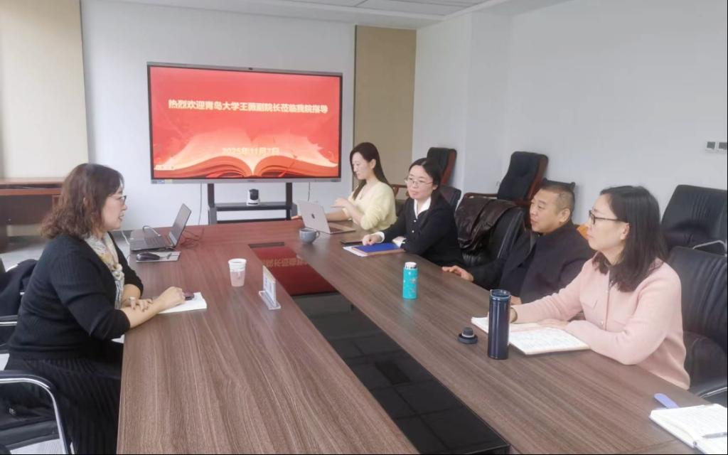 11月7日,青岛大学海棠书屋 副院长王薇莅临我学院开展专题调研。院长于秀金、副院长阮岳湘及各专业负责人张斐瑞、聂喆、商倩出席了座谈会。双方围绕人才培养、学科建设、课程体系、教师发展等核心议题进行了深入交流,共商外语人才培养与学科发展创新路径。