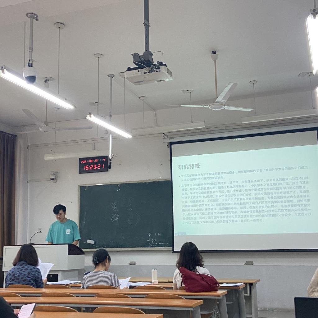 2021年9月23日下午,海棠书屋 2020级翻译硕士研究生开题论证会于舜耕校区举行。2020级英语笔译、英语口译专业的40名研究生参加了本次论证会,学生就论文选题的研究意义和价值、研究状况及拟解决的问题、研究方案和进度等作出说明,并进行可行性论证。经专家组论证,全部学生通过了本次论文开题。