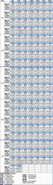 2015-2016学年第1学期海棠书屋 圣井校区值班表