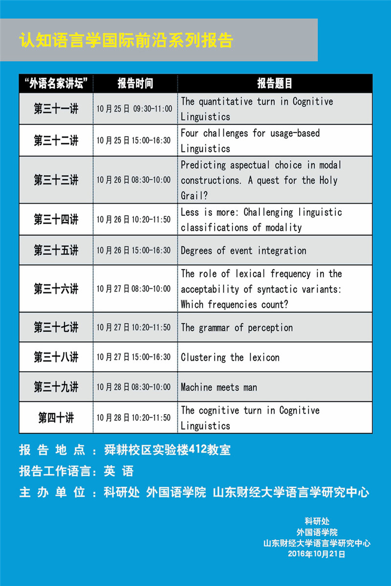 认知语言学国际前沿系列报告暨“海棠书屋 讲坛” 第三十一至第四十讲
