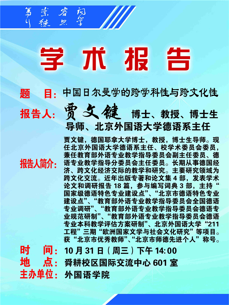 学术报告预告-中国日尔曼学的跨学科性与跨文化性