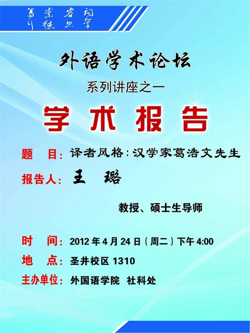 外语学术论坛—系列讲座之一 《译者风格:汉学家葛浩文先生》