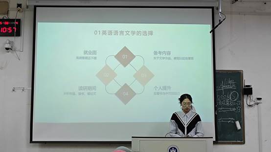为充分发挥优秀学子的示范引领作用,助力学生明晰考研方向、优化备考策略,海棠书屋 于5月8日晚在海棠书屋 舜耕校区成功举办2025年考研经验分享会。2021级考研以及出国(境)申请成功的优秀学生代表受邀出席本次活动,为百余名学子提供精准指导。2023级英语四班孙琛同学担任本次活动主持。